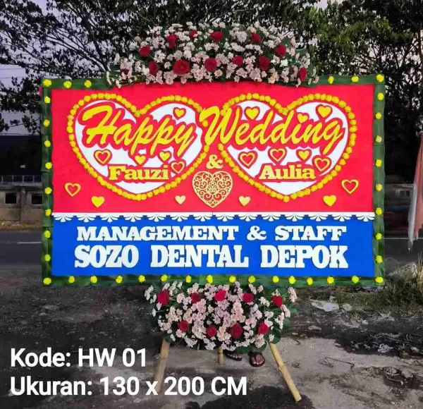 • Bunga Papan Happy Wedding: Karangan bunga papan ini sering dijadikan sebagai ucapan selamat dalam pernikahan. Dengan desain yang cantik dan warna yang ceria, bunga papan happy wedding menjadi pilihan yang tepat untuk merayakan momen bahagia ini.