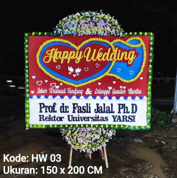 • Bunga Papan Happy Wedding: Karangan bunga papan ini sering dijadikan sebagai ucapan selamat dalam pernikahan. Dengan desain yang cantik dan warna yang ceria, bunga papan happy wedding menjadi pilihan yang tepat untuk merayakan momen bahagia ini.